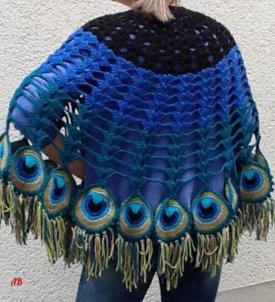 давно я на это павлинье пончо смотрю и описание себе давно распечатала. Никак не соберусь взяться Но вот мне кажется, что в схемке на перышко нужно пометить смену нити во 2 и 3 круге. и разобраться для себя какой ряд какой нитью вяжется