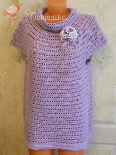 Начинаем вязать от горловины, я набирала 140 петель. Вяжем воротник прямо рядов 15, затем расширяем кокетку, прибавления делаем в рядах сплошных столбиков - через одну ячейку делаем под воздушку 2 столбика с накидом, следующий ряд со сплошными столбиками вяжем как обычно (как 3 ряд).