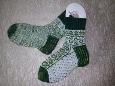 Вот варежки и тапочки я вязала жаккардом, а до носочков еще не добралась ))) Вяжу их обычным способом.