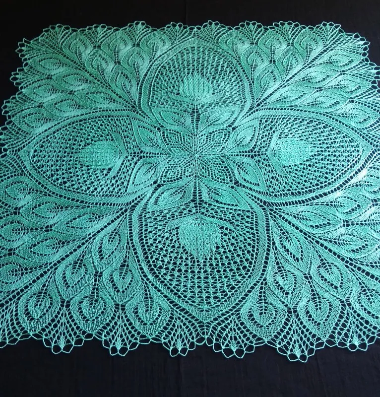 Вязать было интересно, схема непростая, хотя сама по себе и не сложная, но внутри раппорта были ещё два уровня повторов, так что включать автопилот не рискнула.