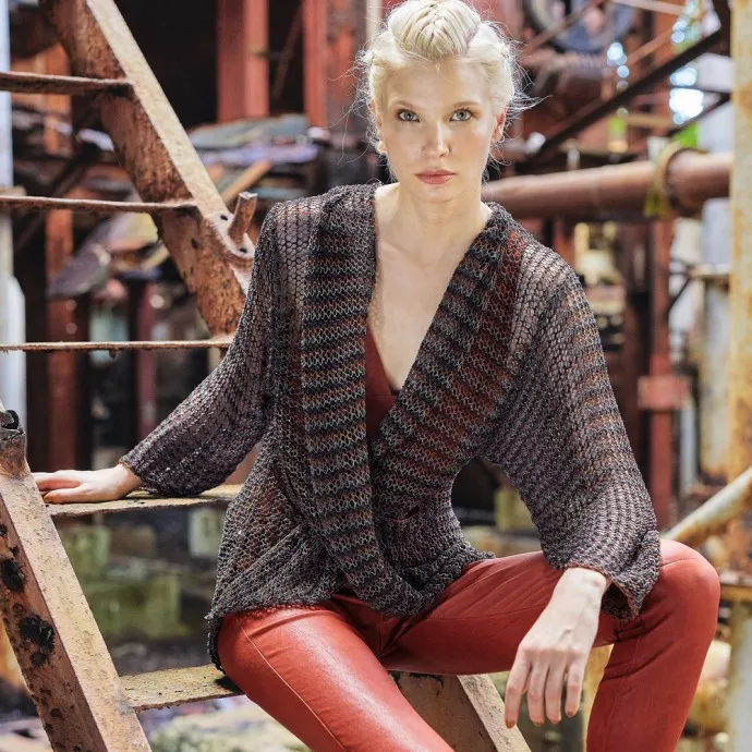 Передняя часть этого необычного свободного пуловера с ажурным узором собрана из двух половинок, перекрещенных при сборке. Очень стильная модель!