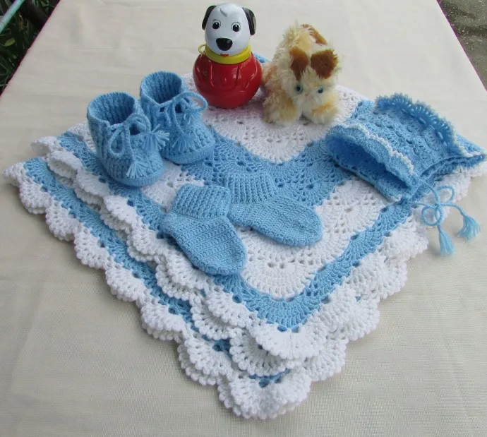 Детский вязаный комплект Мальчиш (плед, пинетки ,носочки, чепчик) ,вязание крючком, изделия ручной работы,
