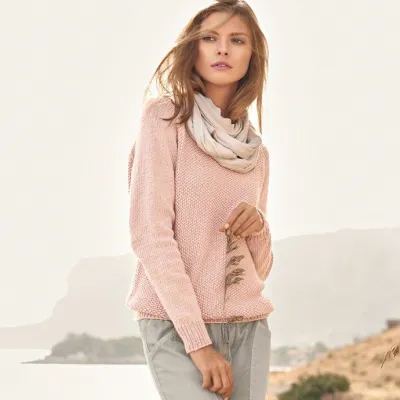Пряжа (58% овечьей шерсти, 38% шелка, 4% полиэстера; 150 м/50 г) — 400 (450) 500 г лососевого цвета; спицы №4,5 и 5; круговые спицы №4,5.