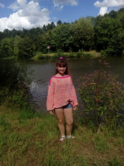 Та пряжа,что показывала ,была другого цвета и куплена для средней дочери. Но попали в магазин с младшей ,Ангелиной, и она выбрала себе другого цвета. Размер у Ангелины XS , но заказ поступил на XXL .Меня убедили мои девчата,что оверсайз именно таким огромным и должен быть. Я конечно сомневаюсь ,но выношу на ваш суд.