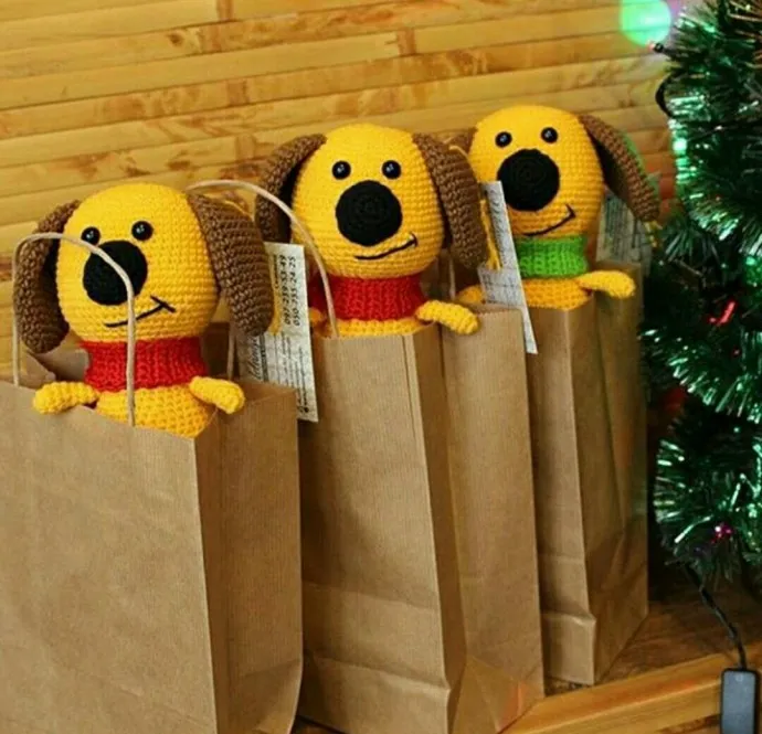Попалась мне на глаза фотография вязаных собачек, которые стоят в ряд и готовятся отправиться к своим хозяйкам. Видимо, как символ нового года под покровительством собаки. И я подумала, а и правда, самое время готовиться к новому году.