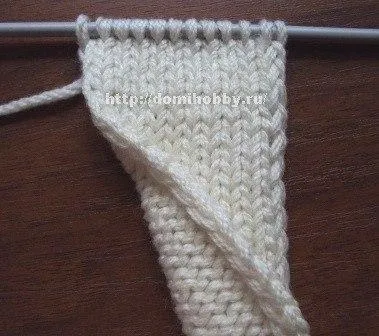 Самая распространенная кромка с образованием по краю цепочки, такой край хорошо подходит для дальнейшего сшивания, образует ровный плоский край с единственным недостатком – он скручивается. При вязании данной кромки в лицевом ряду первую петлю снимайте, как лицевую (нить за работой), далее провязав лицевой ряд, последнюю вяжите лицевой; перевернув работу, в изнаночном ряду, первую петлю снимите, не провязывая как изнаночную (нить перед работой), а последнюю петлю вяжите изнаночной.