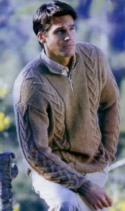 Вам потребуется: 850 г шерстяной пряжи бежевого цвета и застежка-молния длиной 15 см в тон, спицы №3 и 3,5.