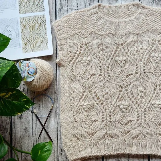 Узорчатый жилет спицами