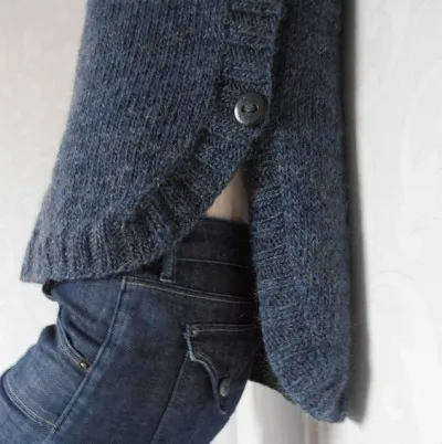 Тут нужны математически расчёты :)))) На первый взгляд сложно, но если очень хочется и озадачиться — всё очень просто. Из ниточек нужных образец, снимаем мерки с образца и фигуры, на которую вяжем, высчитываем ширину-высоту. На фрагменте: закруглённый низ, спинка длиннее переда. Основное полотно — лицевая гладь, обвязка — резинка классическая 2 на 2. Верх наверное вообще на своё усмотрение, скорее всего просто обычный закруглённый ворот. Вяжется наверное 2 полотна, перед и спинка. Если просто: 2 прямоугольника, перед рядов на 20 короче спинки, верх — закрытие энного количества центральных петель, далее для округлой (это если классика) горловины закрытие энного же количества петель в каждом, к примеру 2-м ряду (обычно 2-3-4 петли. Далее обвязка резинкой 2 на 2. Набирать изначально для спинки и переда меньшее количество петель, чем нужно по ширине, и прибавками по 2, к примеру, петли создавать закруглённый низ. Надеюсь, мои сумбурные объяснения хоть немного помогли :)))