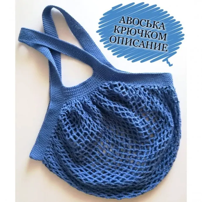 6. Авоська почти готова. Осталось провязать ещё несколько круговых рядов СБН в каждую петлю. (примерно 3см в высоту).