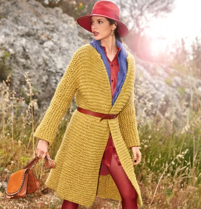 Женское пальто нарочито крупной вязки