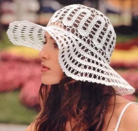Летняя панама из хлопковой пряжи. Связана ажурным узором, очень подходит для летнего зноя.