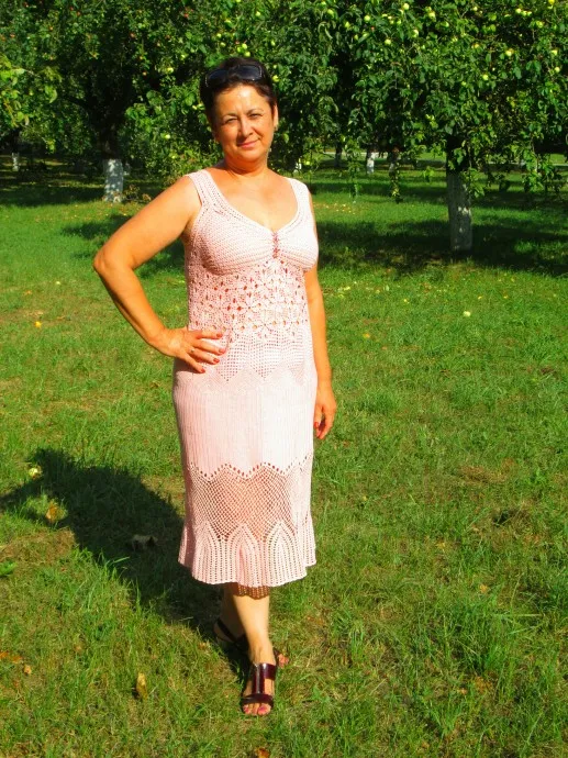 Вязаный крючком сарафан по мотивам сарафана "Нежный ангел" Риммы Чернышевой