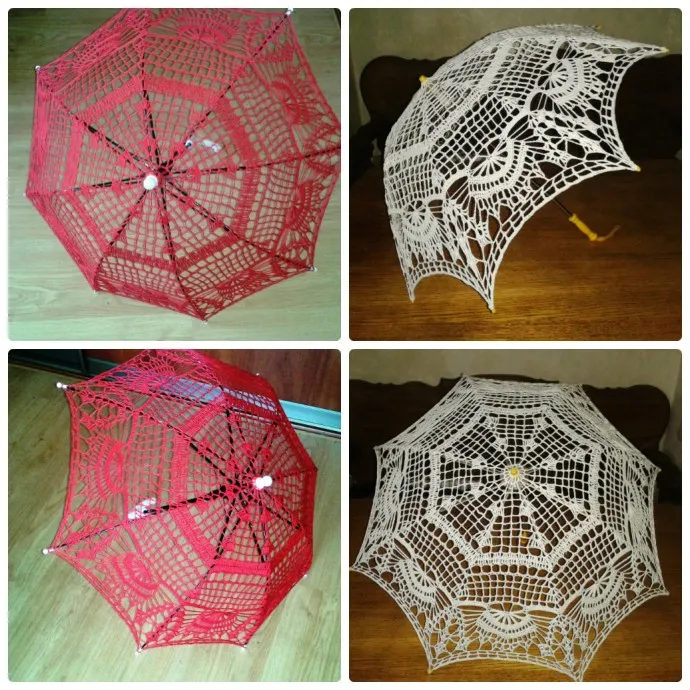Белый зонт был связан просто ради интереса. Но! Нагрянула свадьба дочки , да в красно-белом цвете. Пришлось вязать красный. (Было все это в прошлом году)