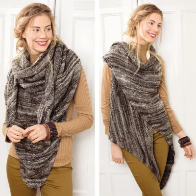 Шаль, жилет с длинными полочками, интересная накидка? Эта интересная модель-трансформер предоставит большой простор для экспериментов.