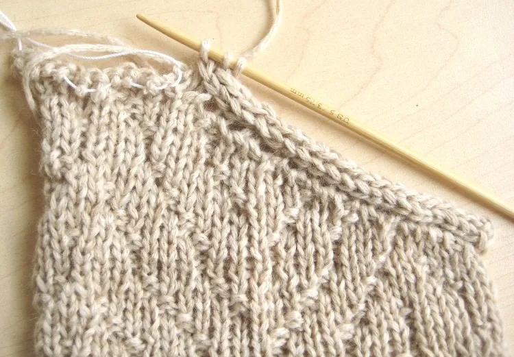 Наберите стежки вдоль того края изделия, который требуется закончить, или переведите отложенные петли на левую спицу.