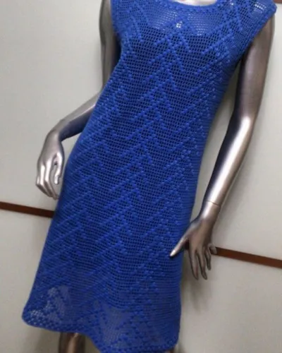 Вяжем синее филейное платье