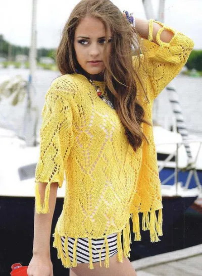 500 г пряжи типа "Medina" от Midara (100% хлопок, 160 м/100 г), спицы №3-4.