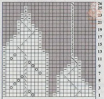 Продолжить вязание по схеме 1, повторяя по кругу раппорт из 13 петель 14 раз.