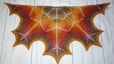 Итак, разрешите представить мое воплощение Maple Leaf shawl дизайнера Maria Magnusson (Olsson), Пряжа кауни Rusty 8/2, 120 грамм, спицы 6мм, приблизительные размеры 140см на 70см.