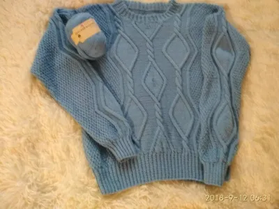 Осень потихоньку вступает в свои права, а, значит, пришла пора новых джемперов. К сожалению, камера исказила цвет, на самом деле этот джемпер нежно голубой. Ушло на него чуть больше четырех клубочков. Вязала в одну нитку на спицах 3 размера.