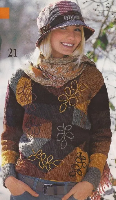 Пуловер с разноцветными вставками