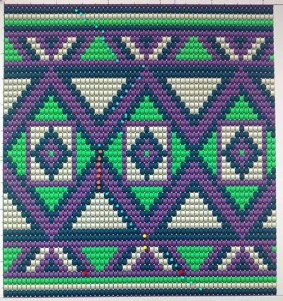 39 р.: * 2 ст.б.н зеленой, 2 ст.б.н. фиалковой, 2 ст.б.н. цв. морской волны, 2 ст.б.н. белой, 2 ст.б.н. фиалковой, 3 ст.б.н. цв. морской волны, 2 ст.б.н. фиалковой, 2 ст.б.н. белой, 2 ст.б.н. цв морской волны, 2 ст.б.н. фиалковой, 8 повтор от* до * 11 раз, переместить булавку.