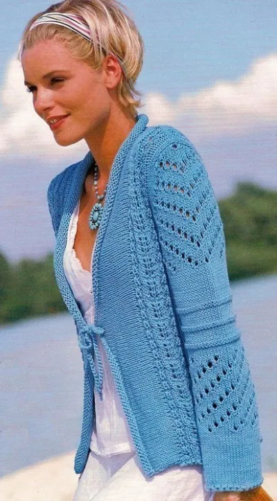 Правая полочка: вязать симметрично левой, вязать по схеме 32(34) петли, при этом 1 петля ажурного узора будет кромочной.