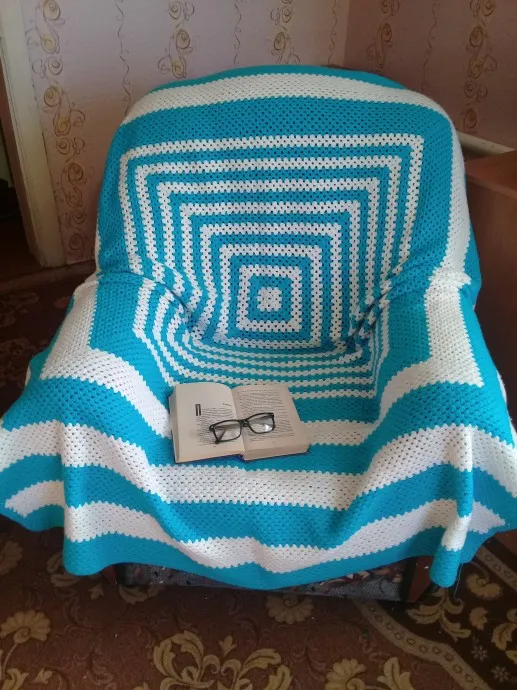 Прелестный плед, цвета выбраны очень удачно, прямо морская волна