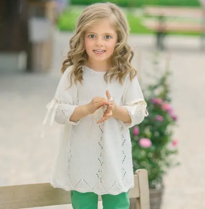 Туника из нежной светлой пряжи – прекрасная и удобная замена нарядному платью.
