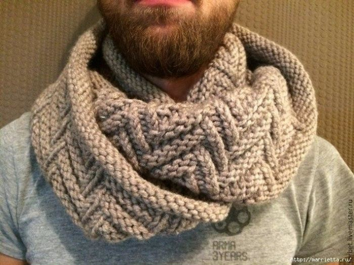 Снуд. Описание. Без схемыУзоры: Плетенка из снятых длинных петель и платочная вязка. Плетенка из снятых длинных петель Набрать 26 петель (число должно делиться на 6 плюс 2 кромочные). 1-й ряд - лицев...