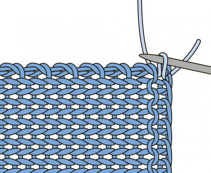Затем на всех петлях 2-й пары спиц (= планка изнаночной стороны) вязать так же.
