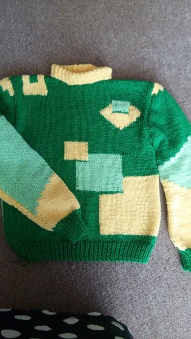 Вязала из остатков пряжи основные нити из детской пехорки, плюс акриловая нить темно-зеленного цвета.