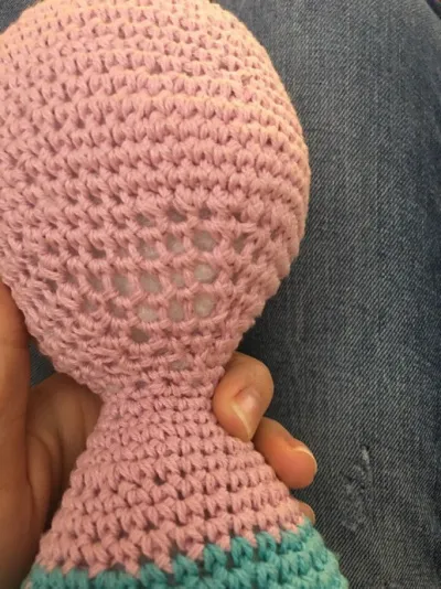 Пожалуйста, помогите разобраться: делаю на игрушке убавку петель(крючком), в итоге получаются большие дырки и виден сильно наполнитель... что не так