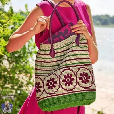 Связанная крючком сумка с жаккардовым узором всегда будет трендовым летним аксессуаром. Вязаная сумка в вашей коллекции будет не только удобной, но и стильной вещью.