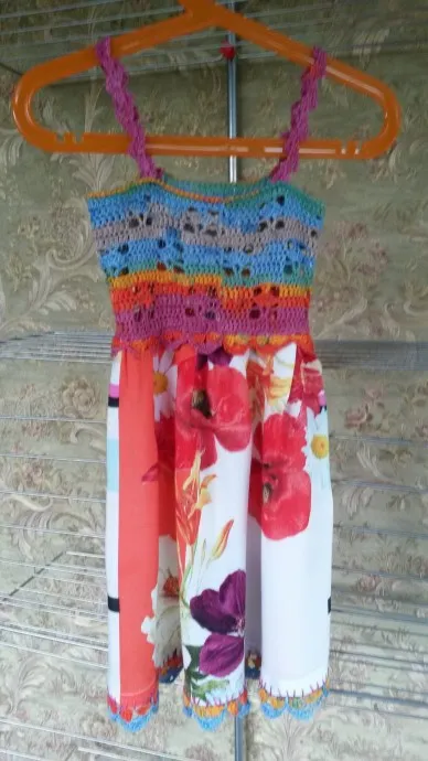 Летние сарафаны для девочек. Верх связан крючком, низ пошит из штапеля.