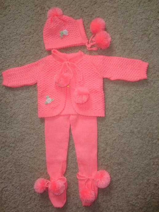 Нарядные комплекты для малыша. Можно пойти в гости, удивить приятно бабушку и дедушку. Можно надеть в больничку, на прогулку. Штанишки высокие, закрывают грудку малыша. Кофточка свободная без пуговичек. Шапочка в виде чепчика. Все изделие украшено помпонами, небольшой вышивкой. Пряжа мягкая, нежная, не колется, не создает дискомфорт для тельца малыша.