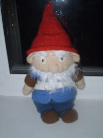Такой вот старичок-домовичок ,наш хранитель дома. Связан из остатков крючком.Борода ,волосы и брови-из травки,пояс-ремешок от старой детской сумочки