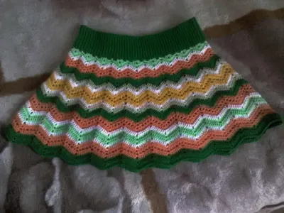 Внучка носит юбочку в садик уже второй сезон.В этом году я по низу добавила еще несколько рядов.Юбка связана сверху внизРезинка поперечная, крючком за заднюю стенкуСхемы нет, нашла в Инете, связала, схему не сохранила.