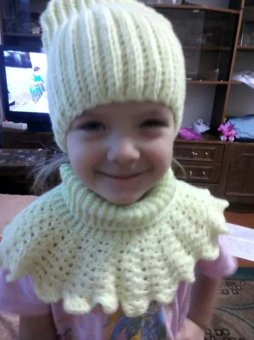 а как удобно в саду, шарф завязывать не умеет, со снудом тоже не сложнова-то, да и воспитатели не смотрят кто как шарф завязал. А манишку она сама спокойно одела и ничего никуда не сползет