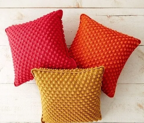 Вязаная подушка с объемным узором