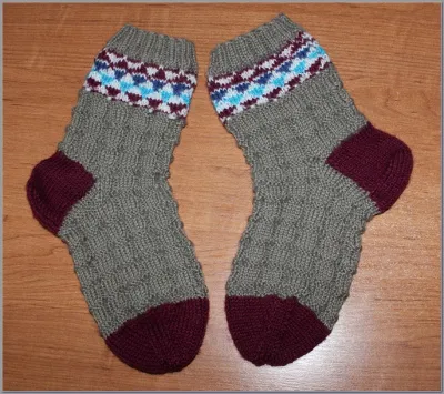 Всегда стараюсь остатки ниточек пристроить, а эта пряжа очень теплая и мягкая, так что носочки из нее получаются замечательные.