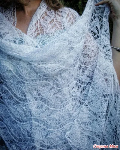 Рисунок сложноватый, но результат того стоит. это я вяжу днем, на солнце. А вечером - шаль гентиана.