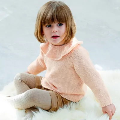Изящный и элегантный джемпер для маленьких модниц! Подчеркнутые линии реглана и широкая оборка у горловины — его единственные украшения!