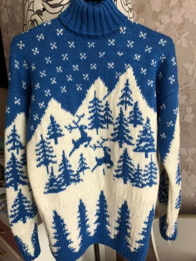 Здравствуйте, дорогие рукодельницы! Я давно хотела связать себе свитер норвежским орнаментом. Искала, выбирала и остановилась на таком узоре. Очень люблю зимние виды спорта и думаю он будет в самый раз и на каток и на горные лыжи. Использовала пряжу Пихорка Конкурентная 3 мотка белой и 3 голубой. Воротник вязала резинкой 2х2 длиной 15-16 см.
