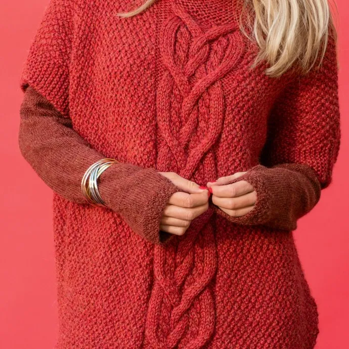 Пряжа (75% шерсти альпака, 25% полиамида; 420 м/100 г) — 100 г цвета корицы; чулочные спицы № 3; крючок № 3.