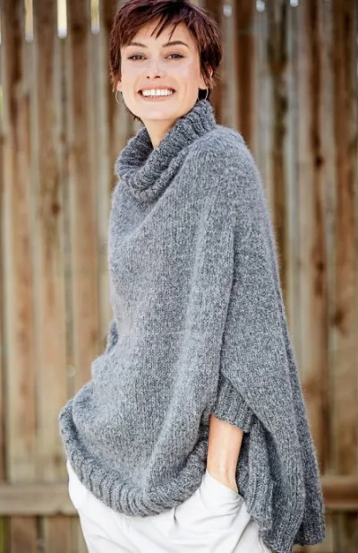 Простой, но очень изысканный дизайн, а также роскошная смесь шерсти альпака, шелка и мохера делают это пончо незаменимым в гардеробе модницы, .которая ценит не только стиль, но и комфорт.