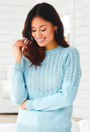Прелестный свитер с сочетанием ажурных кокетки и лицевой глади