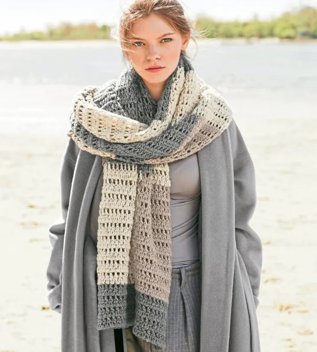 Гигантский шарф в стиле пэчворк вяжется довольно просто, но необходимо соблюдать внимание, чтобы не нарушить разноцветный узор.