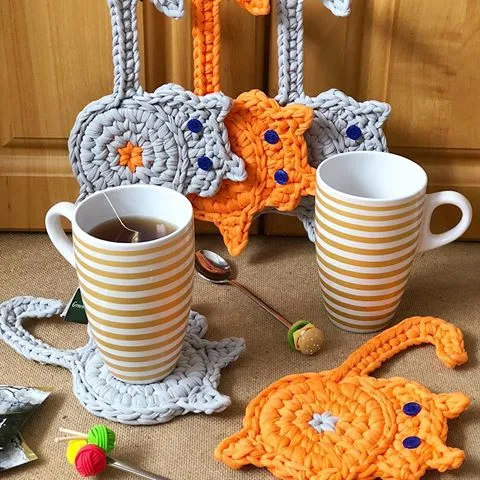 У истинной рукодельницы даже чаепитие не обходится без любимого хобби! Взять хотя бы милые подставки в виде котиков! Что может быть милее?